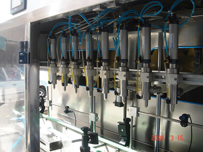 迅捷機械設備公司技術(shù)研發(fā)人員經(jīng)多次反復試驗,最終不負眾望,研發(fā)出一種新型升級版液體灌裝機的負壓灌裝頭,該負壓灌裝頭是在原負壓灌裝頭的基礎上,在灌裝管道內(nèi)設置了一套活動閥芯裝置,使液體灌裝過程中的滴漏現(xiàn)象大為減少;另外,被灌裝容器內(nèi)的液面高度可以保持一致,并且可以根據(jù)需要調(diào)節(jié)被灌裝容器內(nèi)的液面高度。
